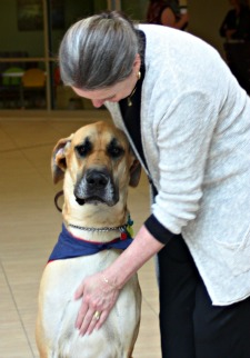 Hospital staff members need emotional support as they carry out their duties. Beretta is a weekly cheerleader who arrives to visit and bolster their moods. He has become a regularly scheduled volunteer who now is quite relaxed and comfortable visiting the rooms of the hospital floors he regularly visits. Sometimes it is difficult to determine who benefits more from the therapy dog visits--the staff or the patients!